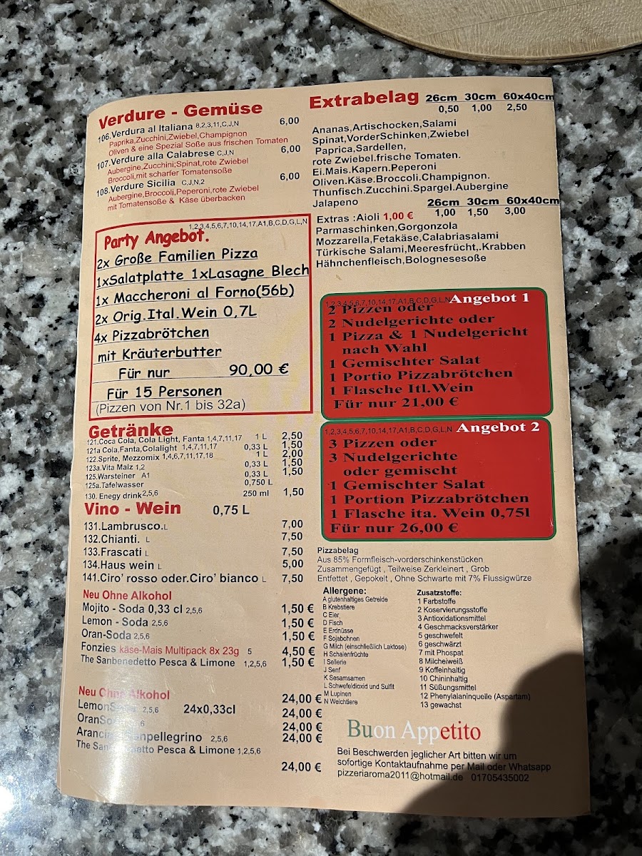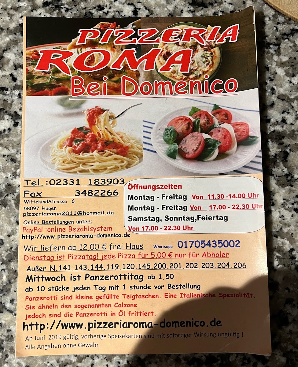 The menu at Pizzeria Roma, located at Wittekindstraße 6 in Hagen, comes across as a well-balanced expression of classic Italian comfort food with a few refined touches, making it easy to see why it appeals to a broad range of diners. Dishes like Picada stand out for their hearty, satisfying character, offering a rich and filling option that complements the restaurant’s more delicate pizzas. Champagne adds a lighter, more celebratory note to the menu, creating contrast and giving guests a sense of variety beyond the core pizza selection. The pizza lineup is clearly the heart of the menu: Pizza Mit Spinat Und Krabben combines spinach and shrimp in a way that feels both fresh and indulgent, appealing to those who enjoy seafood-forward flavors. Pizza Olymp leans toward a Mediterranean profile, while Pizza Cuore brings a playful yet refined take that feels personal and thoughtfully composed. For lovers of traditional Italian ingredients, Pizza Parma delivers familiar elegance with its balanced toppings, and Pizza Margherita remains a benchmark of simplicity, highlighting quality through restraint rather than excess. Taken together, these signature dishes show a menu that values consistency, recognizable Italian flavors, and careful combinations, making the dining experience feel complete and well-considered without unnecessary complexity.